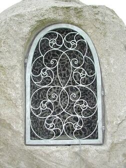 (violetter Schmuckstein) ausgestattet wurde. Diese Grotte soll später eine Schwarze Madonna beherbergen. Die Madonnenfigur ist ein Fundstück aus einem Abbruchhaus in Assisi.