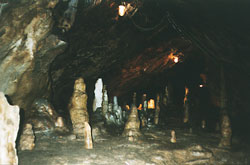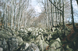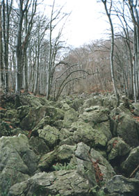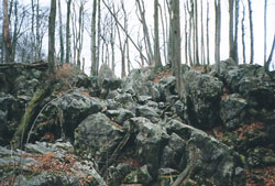 und die kühlen und feuchten Felsspalten. Am unteren Ende des Felsenmeeres kommt man zum Eingang einer der interessantesten Tropfsteinhöhlen des Sauerlandes, die "Heinrichshöhle".