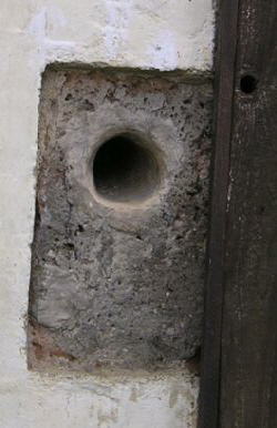 hat auf einer Seite eine Öffnung. Diese führt 50cm röhrenförmig sich etwas verjüngend bis zu eine Stelle im inneren des Steines, an dessen Oberseite einige Rillen zu ertasten sind,
