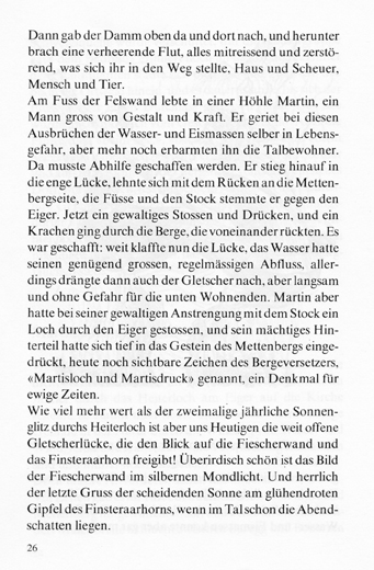 Grindelwalder Sagenbüchlein "Challigroosi und Muggenstutz" wird die oben erwähnte "riesenmässige Kraftentfaltung" in der Sage "Martinsloch und Martinsdruck"
