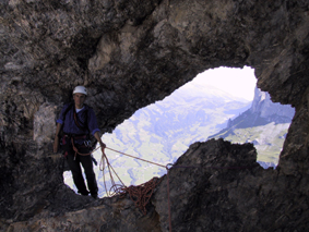 Zeiten die Sonne (und der Mond) scheint. Das Loch befindet sich am östlichsten Ende des Eigers, unterhalb der Ostegg.