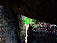 Unterkante des rechten "Himmelauges". Zur Wintersonnenwende ruht demnach der rundliche Schatten des Decksteines auf diesem Auge.
