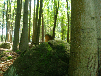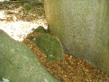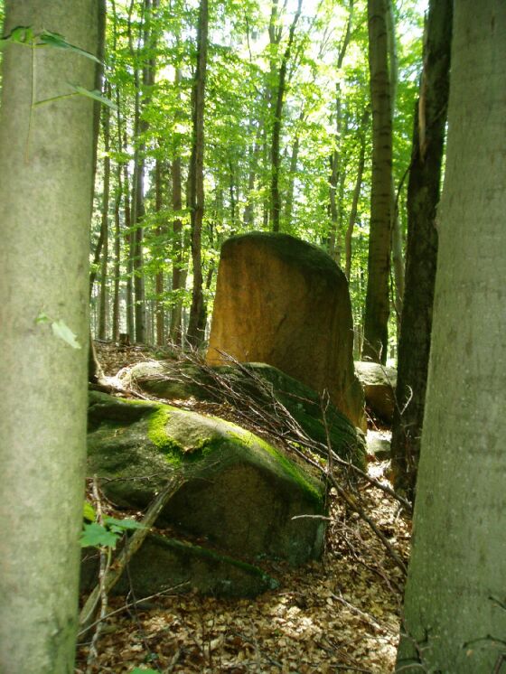 (von einem Baum aus seine Lage gehoben) Bemerkungen: Das Objekt befindet sich südlich neben einer steilen Kurve in der Mitte des Hohwaldes. Im Umfeld des Objektes befindet sich ein großes Steinbecken und zwei auffällige Sichtspalten in Felsblöcken die jeweils die gleiche Winkelabweichung von 15° rechts und links zur Nord-Südlinie aufweisen.