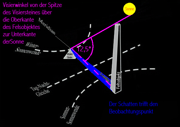 Auch die vorhandenen Visiersteine können wegen der sehr langsamen Bewegung der Sonne entlang des Horizontes nur als