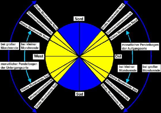 der gleichen geografischen Breite wie der Fundort der Himmelsscheibe von Nebra liegt und damit die Pendelbewegung der Sonne zwischen den beiden Wendepunkten am östlichen