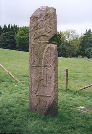 die Verzierungen aufweisen. Auf der einen Seite wurden verschiedene Symbole eingeritzt und auf der anderen ein keltisches Kreuz, welches aber mit der Zeit ziemlich